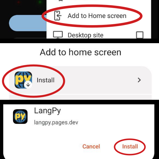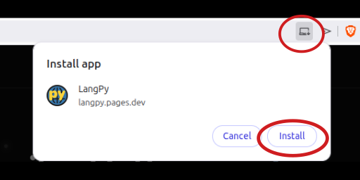 LangPy is a web application that can be installed as a Progressive Web App (PWA), allowing you to use it as if it were a native application.